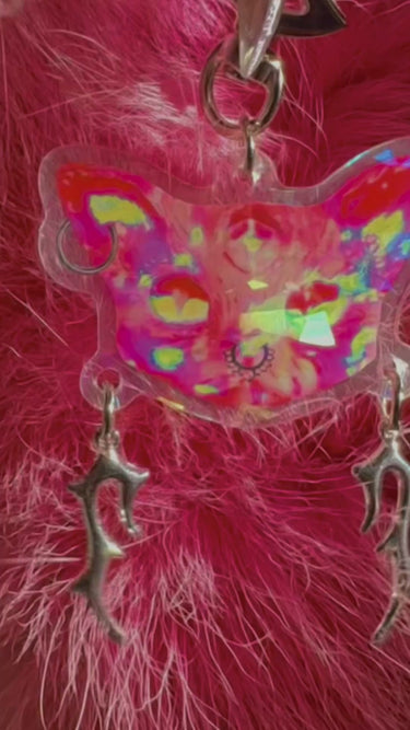 ๐ This "Acid Pink" Pierced Kitty Charm features a Moon Clasp, & is available with either silver Star Charms or silver Antler Charms!