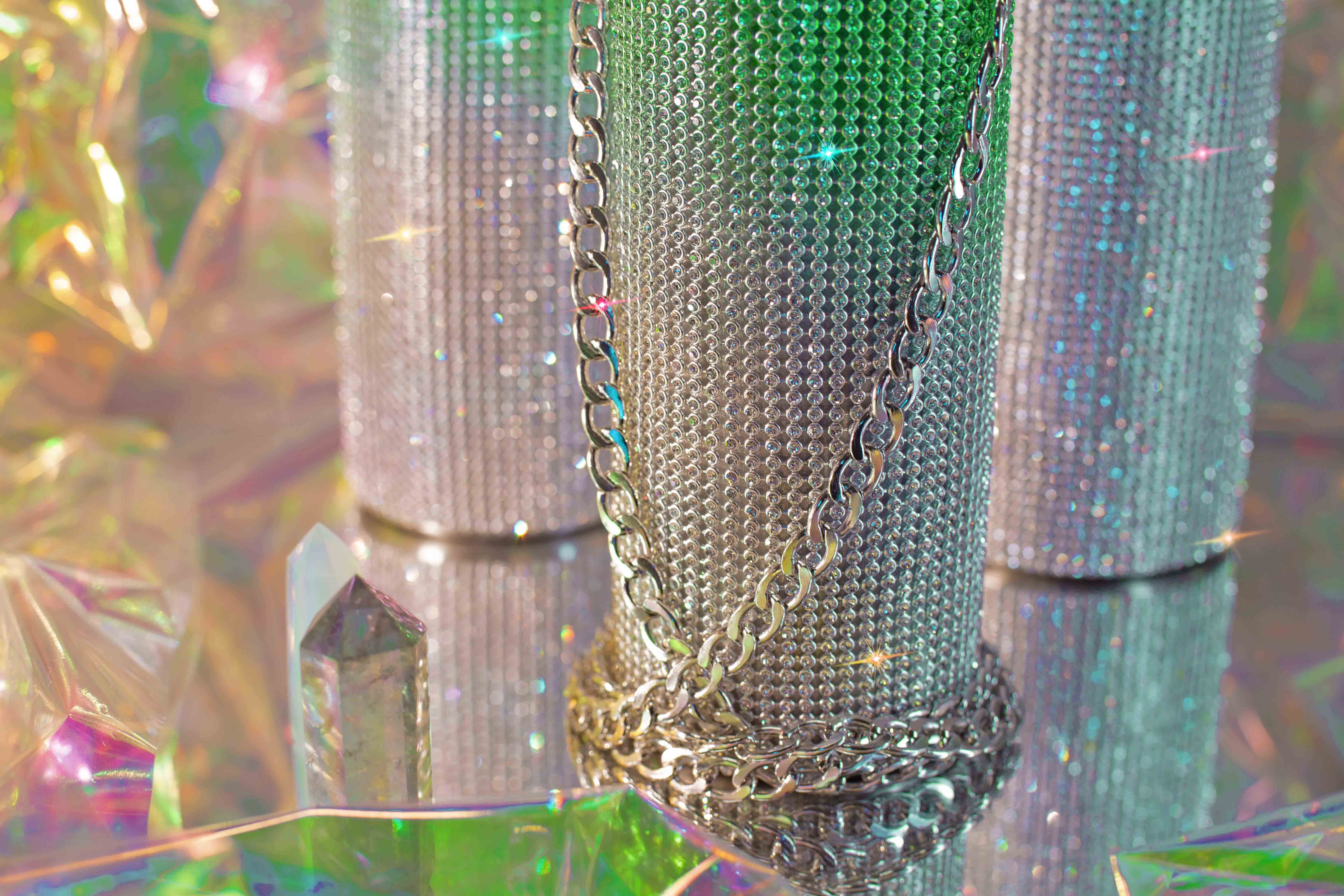 The ultimate boujee bouj diamond sparkle water bottle in soft green Emerald Snow...