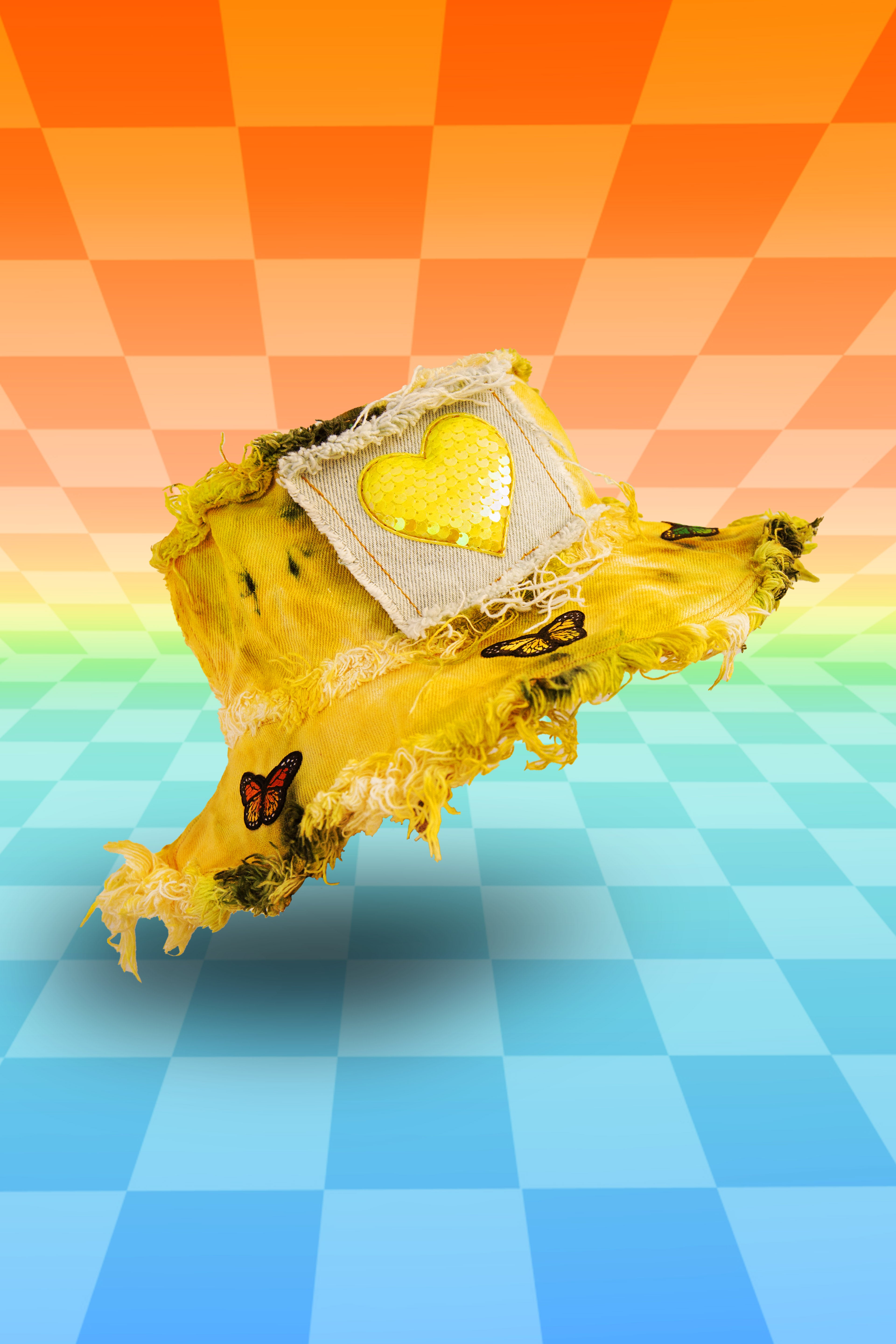 Her base is one of our OG Fade Tie Dye single color fade from vibrant to light, or our classic denim, or one of our bleach dribble hats. Constructed with massively frayed denim edges, & a wire insert through the brim to keep her poppin' all night long!