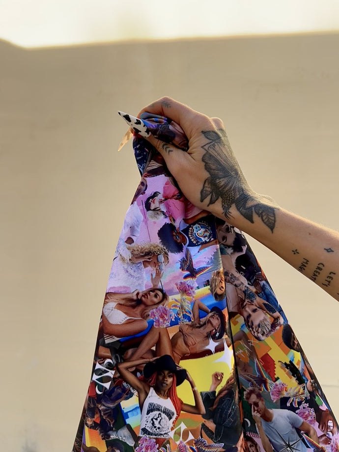 if you don't know me (Alyssa) I've been a professional photographer for 15 years before starting Neon Nomade. Trippy Humanz Collage Lining is a montage of many of the humanz I've photographed throughout this time. The collage itself took me 100's of hours to piece together (not to mention the yearzzzz of different visions + relationships + locations around the planet to create each shoot & each image) The collage spans 4.5ft x 3.25ft with each human only being about 1in wide...