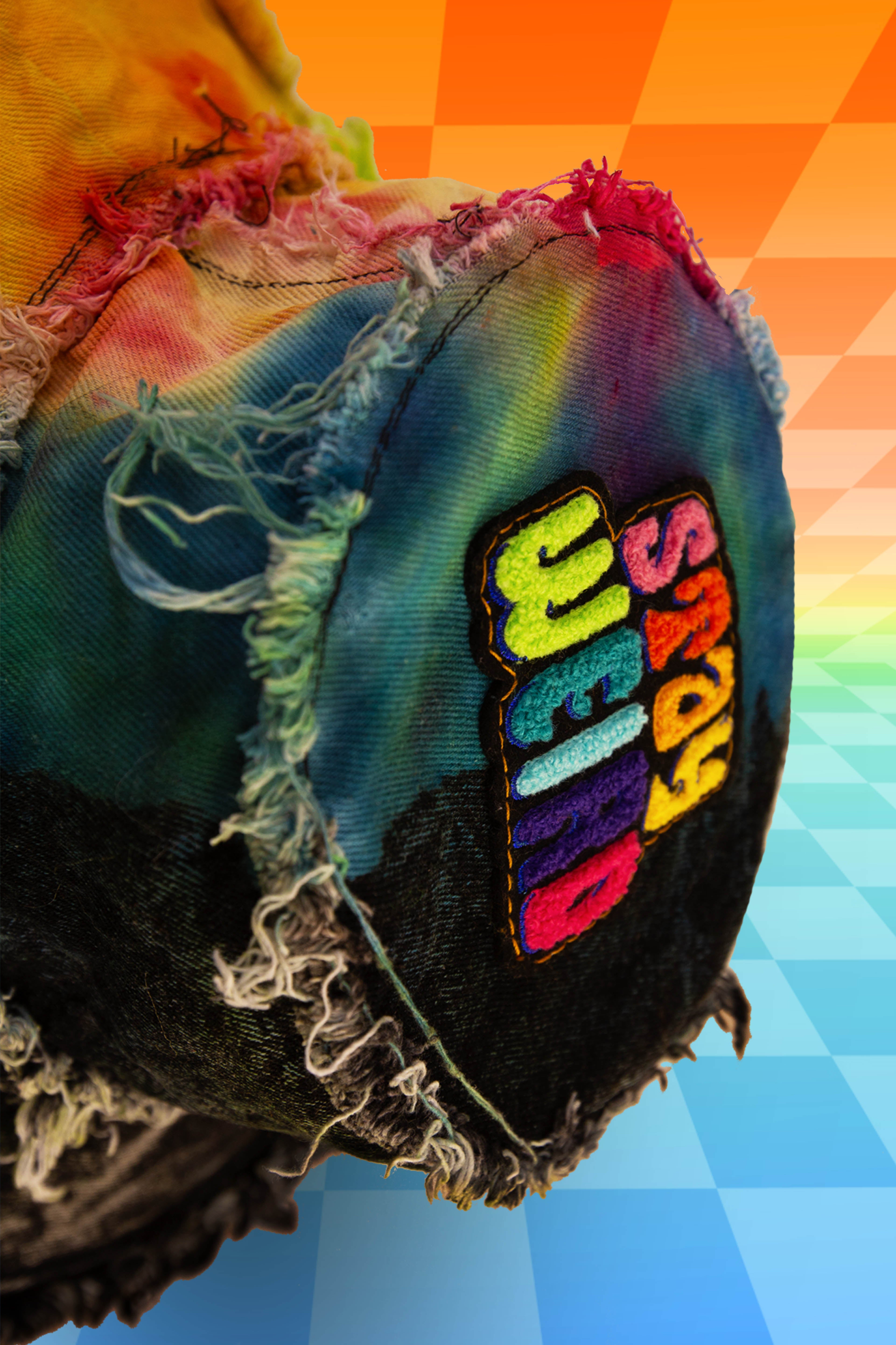 Bleached & painted with love, with 1/2 black and the other 1/2 rainbow colors! (if you wanna pick a specific color pallette, type it into the lemme know box!)