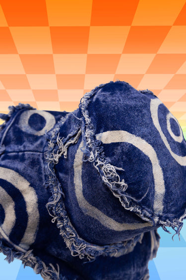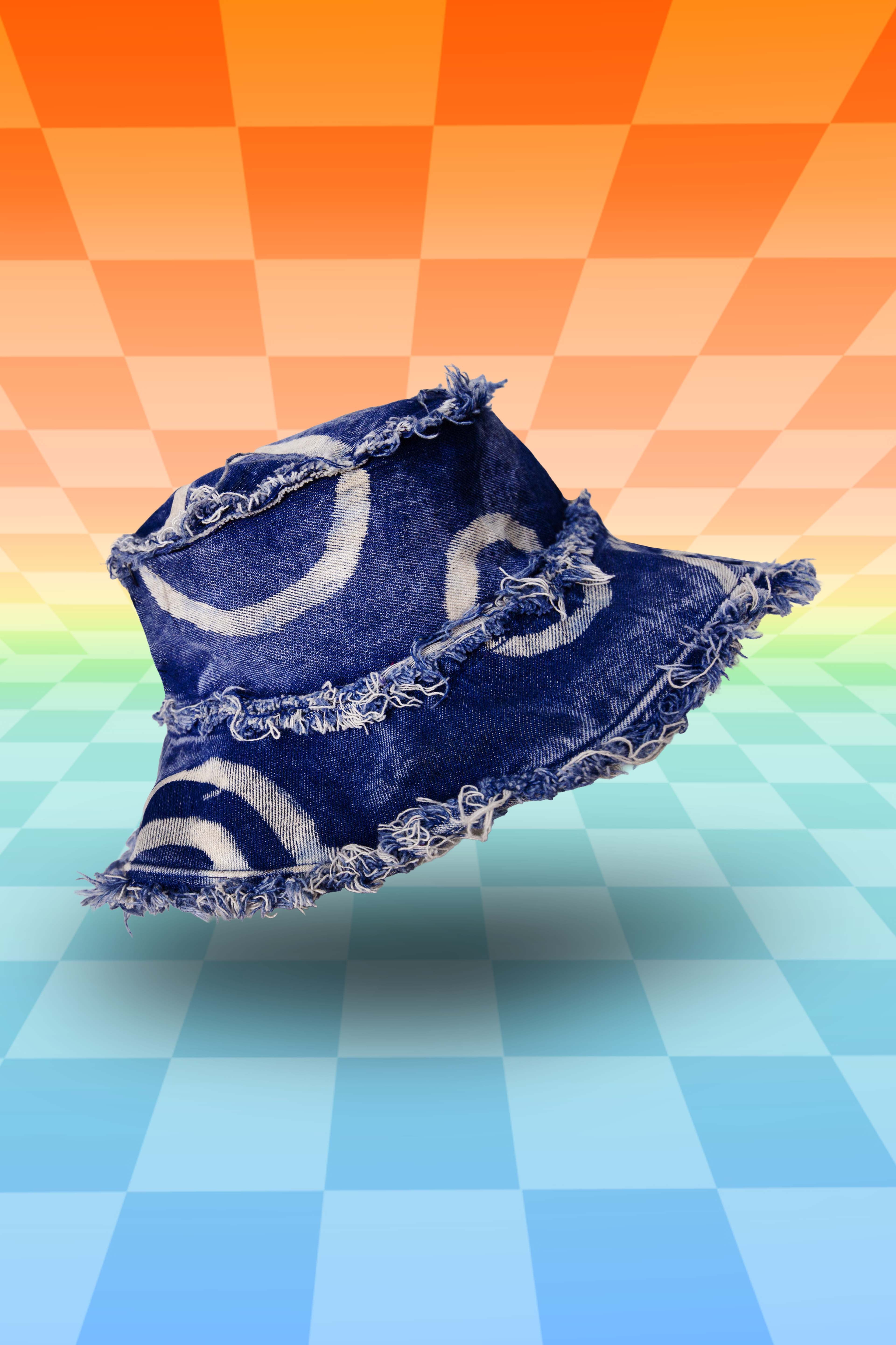 Bleached & painted with love (legit by hand with a paintbrush) she constructed with massively frayed denim edges, & a wire insert through the brim to keep her poppin' all night long. Each will be a unique variation of third eyes painted on with circles and swirl squiggle lines, very organic and flowing, with evil eye jewel patches sewn on or swapped out to tiny butterfly patches (dealer's choice!) 👁️🦋